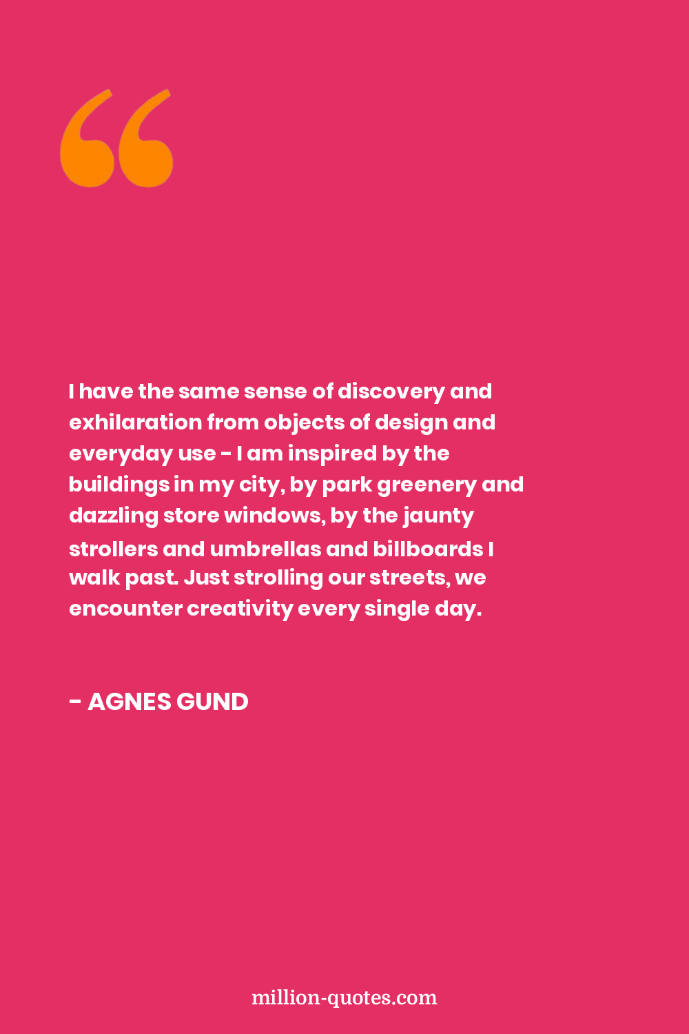 I have the same sense of discovery and exhilaration from objects of design and everyday use - I am inspired by the buildings in my city, by park greenery and dazzling store windows, by the jaunty strollers and umbrellas and billboards I walk past. Just strolling our streets, we encounter creativity every single day.