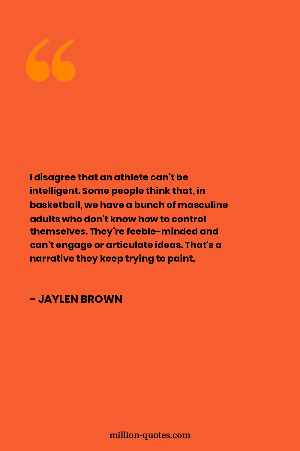 I disagree that an athlete can't be intelligent. Some people think that, in basketball, we have a bunch of masculine adults who don't know how to control themselves. They're feeble-minded and can't engage or articulate ideas. That's a narrative they keep trying to paint.
