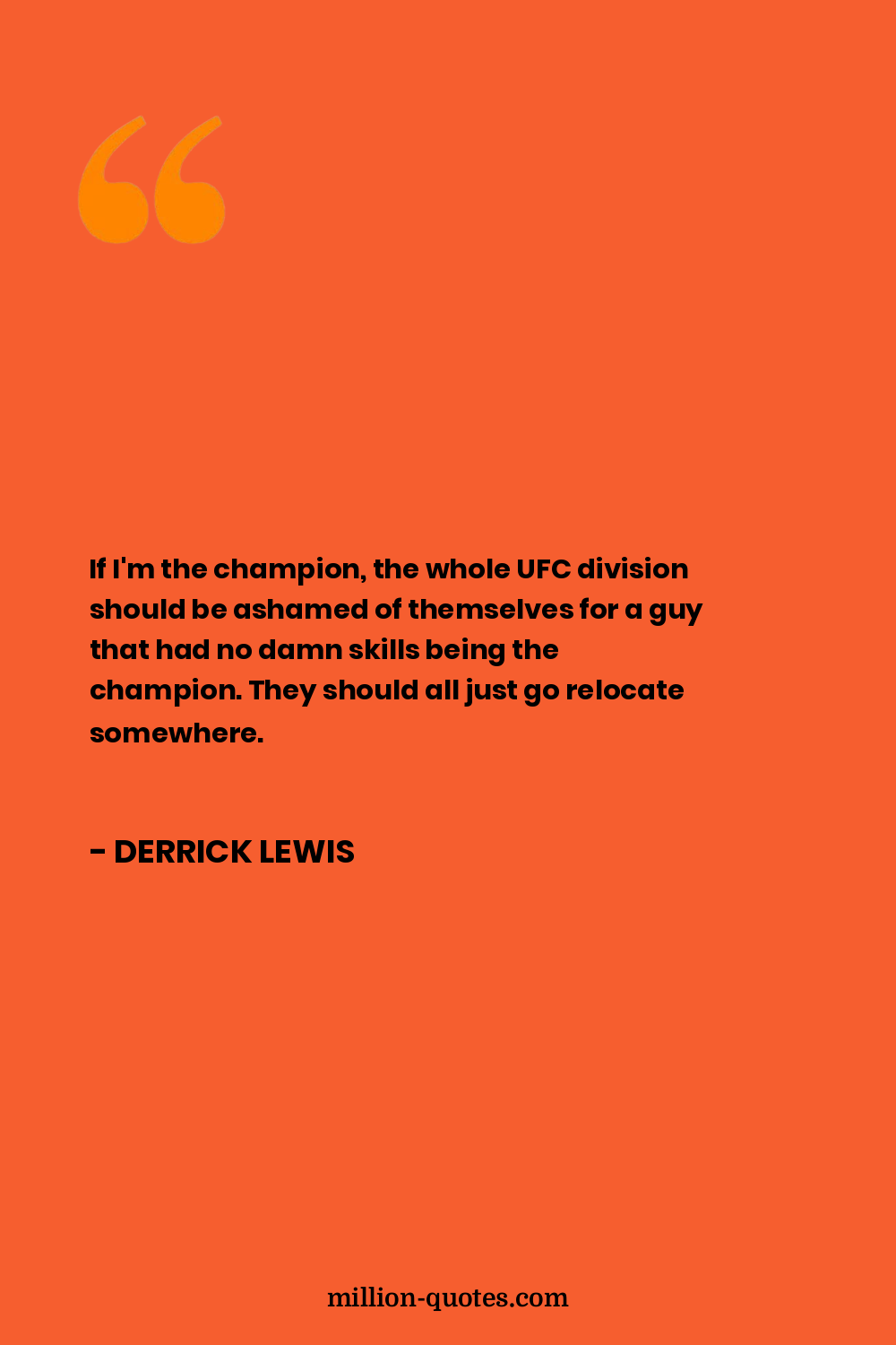 If I'm the champion, the whole UFC division should be ashamed of themselves for a guy that had no damn skills being the champion. They should all just go relocate somewhere.
