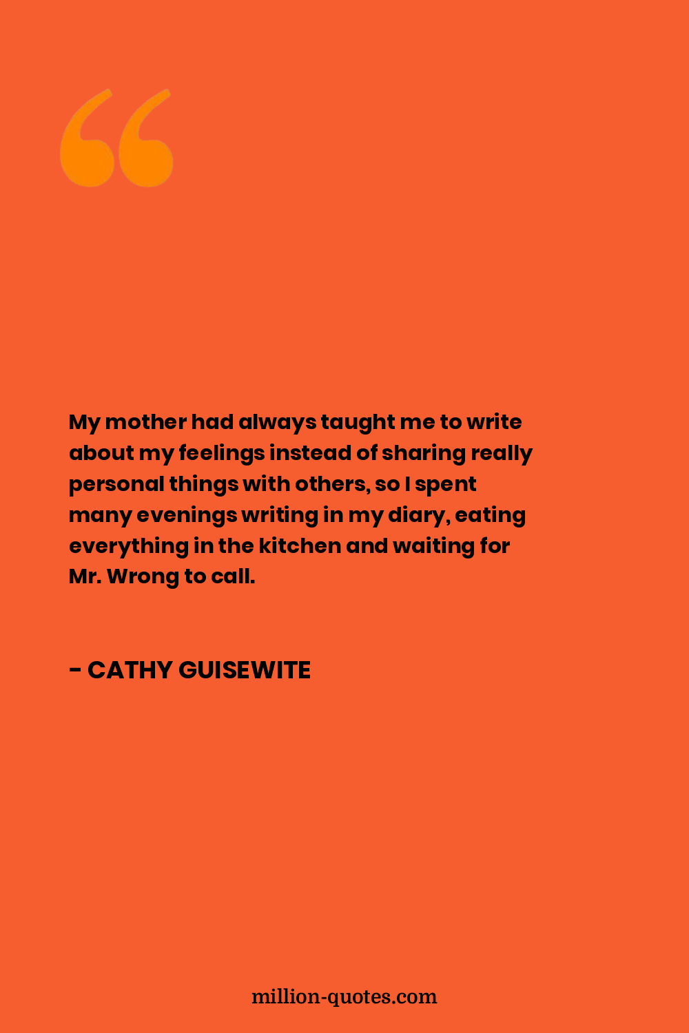 My mother had always taught me to write about my feelings instead of sharing really personal things with others, so I spent many evenings writing in my diary, eating everything in the kitchen and waiting for Mr. Wrong to call.