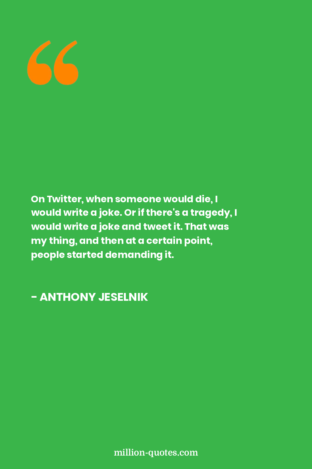 On Twitter, when someone would die, I would write a joke. Or if there's a tragedy, I would write a joke and tweet it. That was my thing, and then at a certain point, people started demanding it.