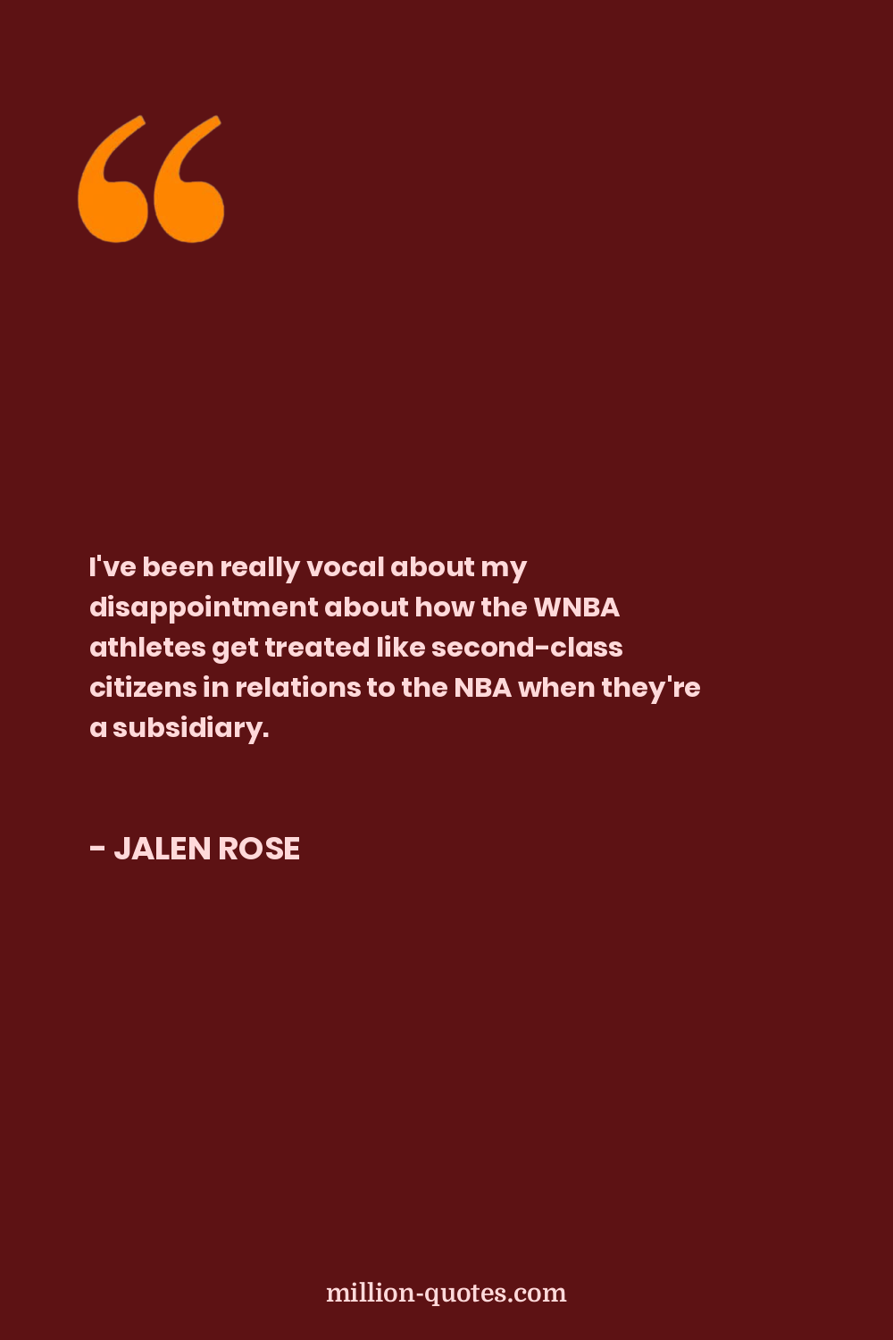 I've been really vocal about my disappointment about how the WNBA athletes get treated like second-class citizens in relations to the NBA when they're a subsidiary.