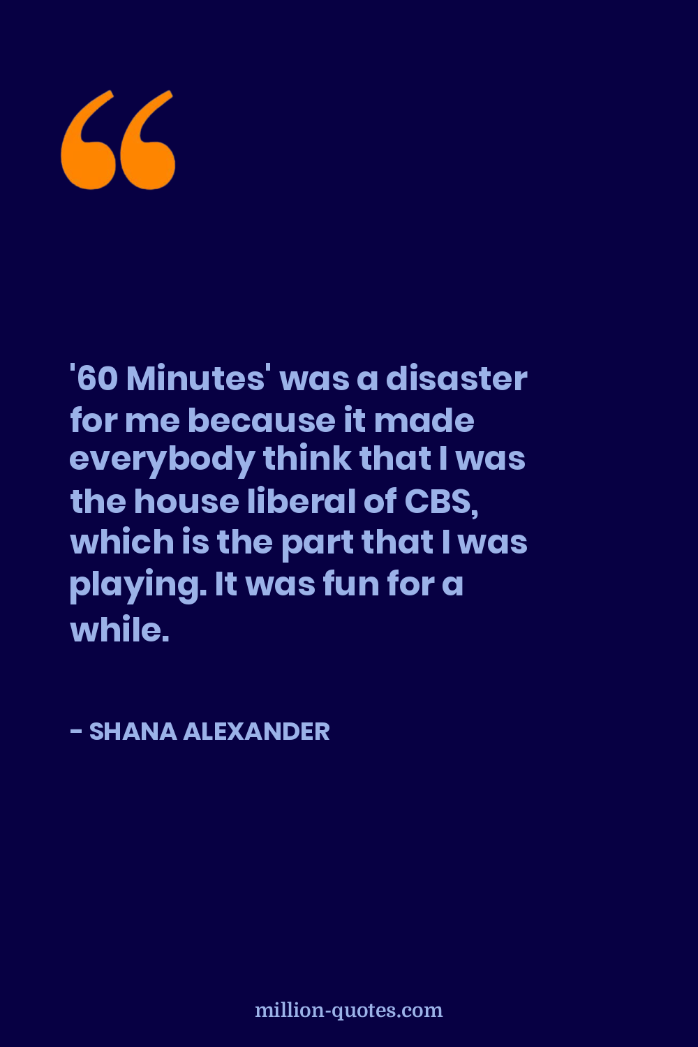 '60 Minutes' was a disaster for me because it made everybody think that I was the house liberal of CBS, which is the part that I was playing. It was fun for a while.