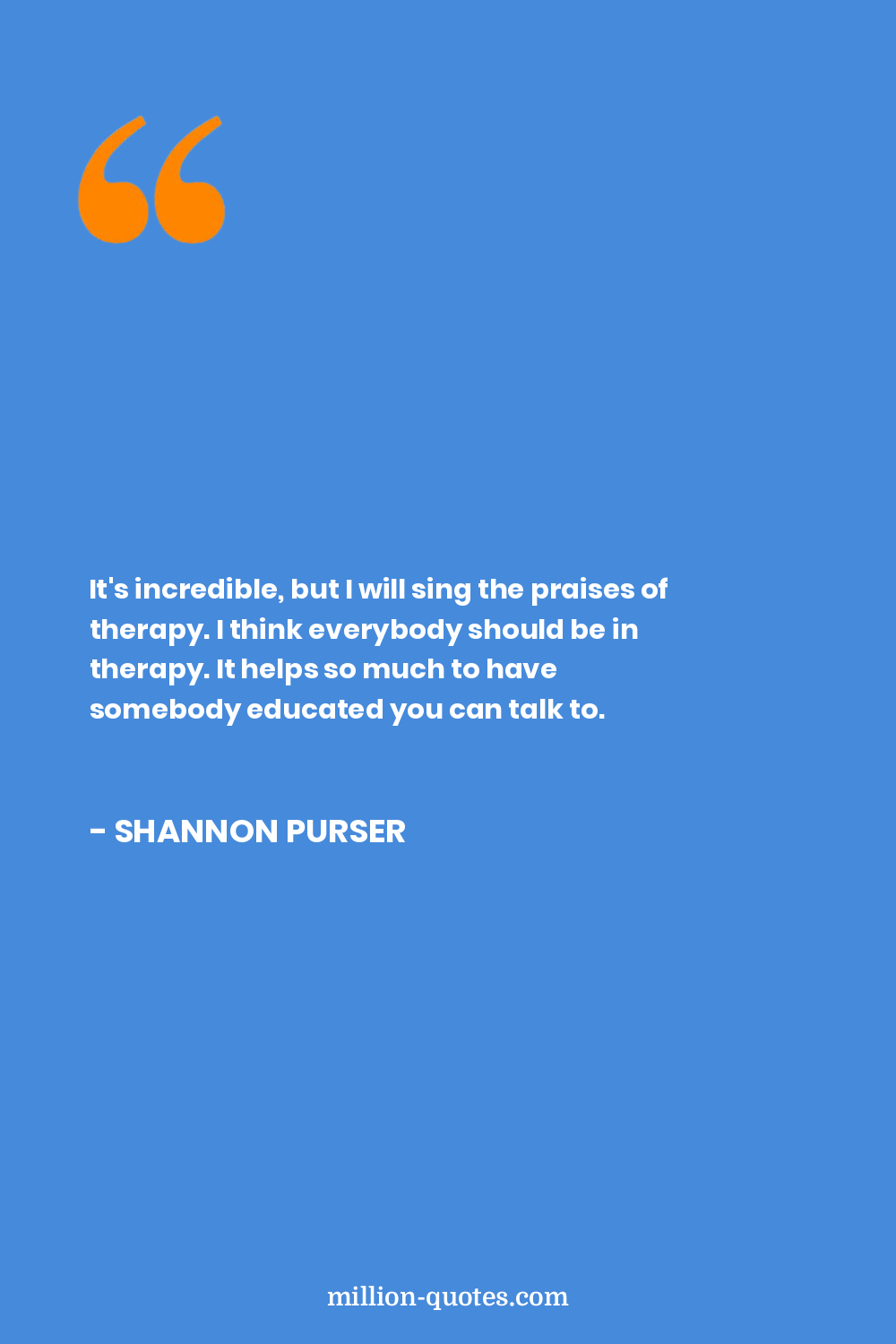 It's incredible, but I will sing the praises of therapy. I think everybody should be in therapy. It helps so much to have somebody educated you can talk to.
