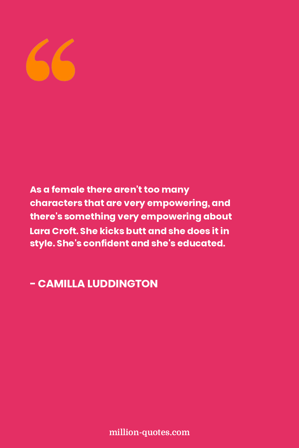 As a female there aren't too many characters that are very empowering, and there's something very empowering about Lara Croft. She kicks butt and she does it in style. She's confident and she's educated.