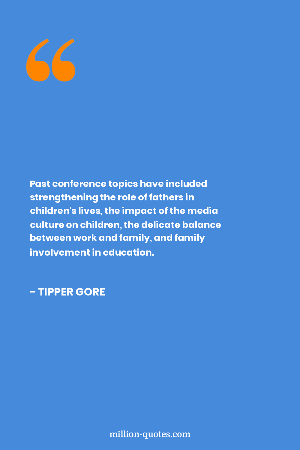 Past conference topics have included strengthening the role of fathers in children's lives, the impact of the media culture on children, the delicate balance between work and family, and family involvement in education.