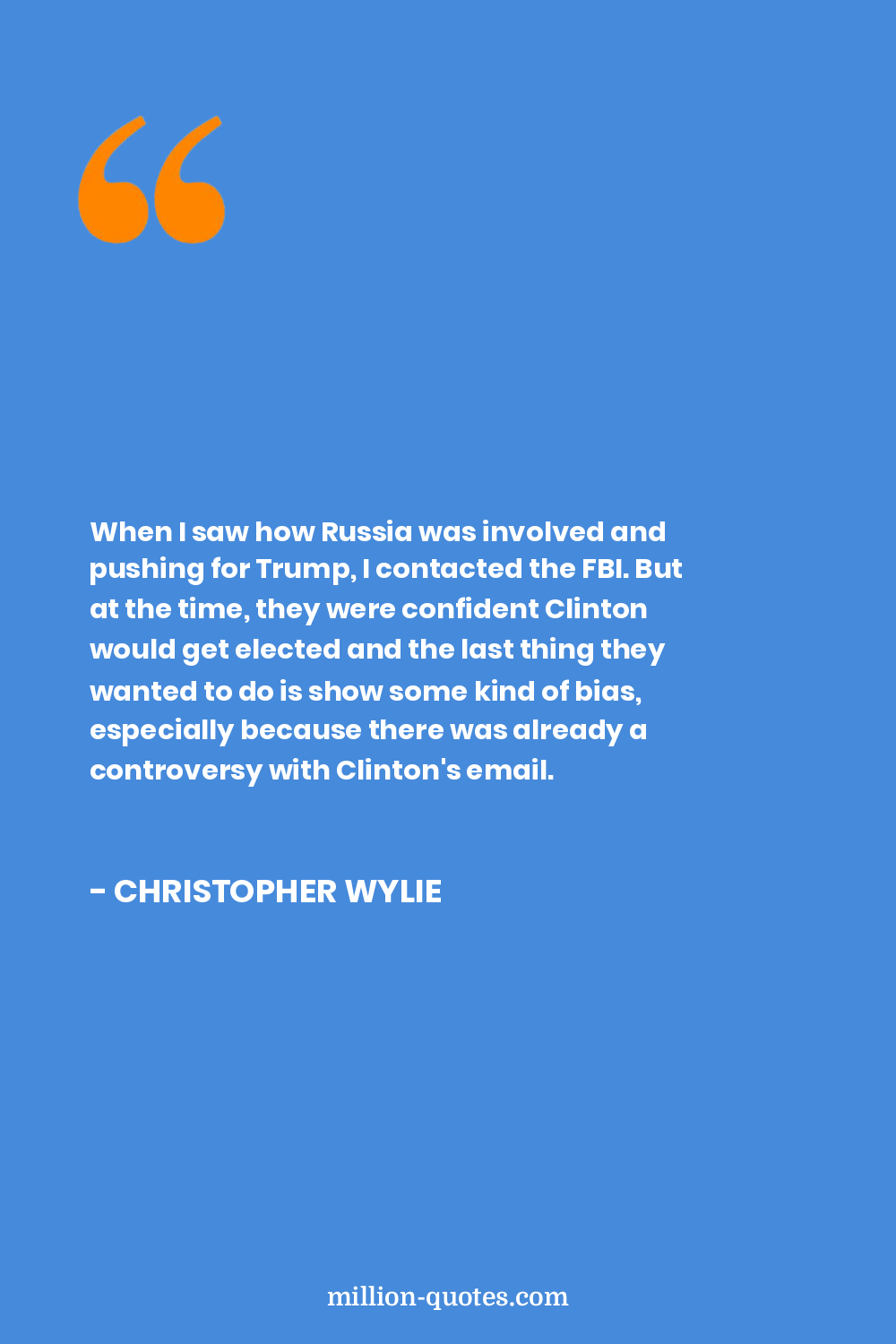 When I saw how Russia was involved and pushing for Trump, I contacted the FBI. But at the time, they were confident Clinton would get elected and the last thing they wanted to do is show some kind of bias, especially because there was already a controversy with Clinton's email.