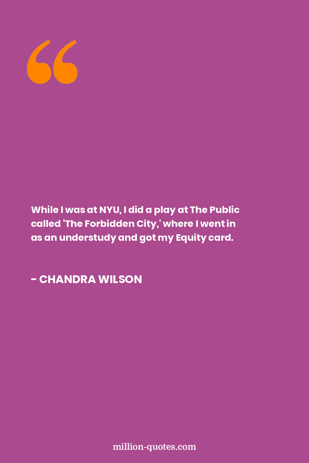 While I was at NYU, I did a play at The Public called 'The Forbidden City,' where I went in as an understudy and got my Equity card.