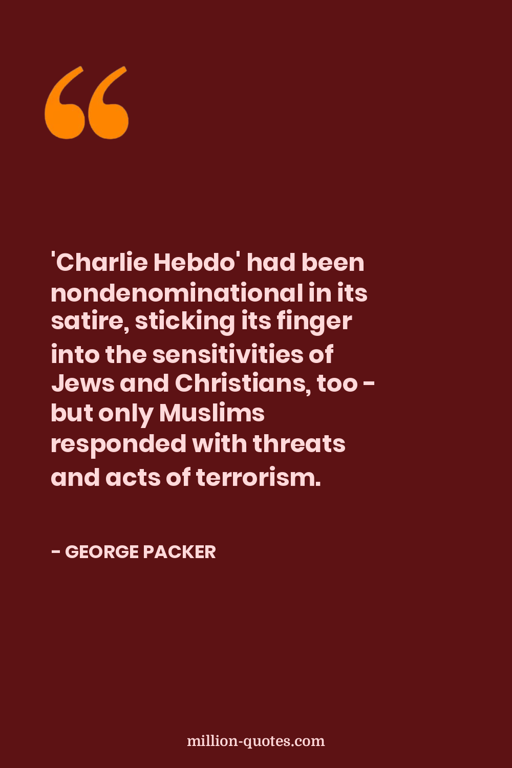 'Charlie Hebdo' had been nondenominational in its satire, sticking its finger into the sensitivities of Jews and Christians, too - but only Muslims responded with threats and acts of terrorism.
