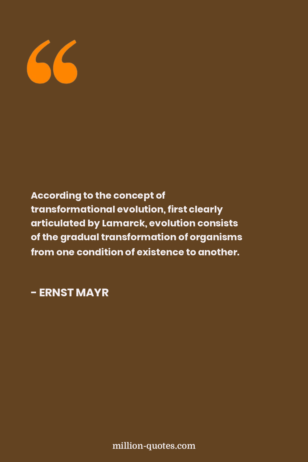 According to the concept of transformational evolution, first clearly articulated by Lamarck, evolution consists of the gradual transformation of organisms from one condition of existence to another.