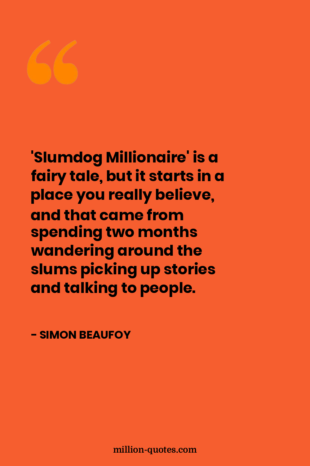'Slumdog Millionaire' is a fairy tale, but it starts in a place you really believe, and that came from spending two months wandering around the slums picking up stories and talking to people.