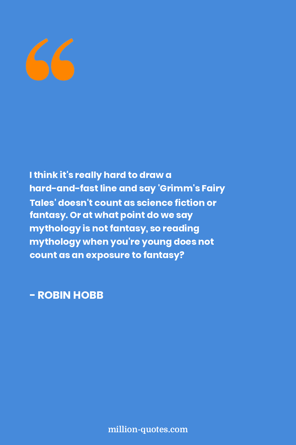 I think it's really hard to draw a hard-and-fast line and say 'Grimm's Fairy Tales' doesn't count as science fiction or fantasy. Or at what point do we say mythology is not fantasy, so reading mythology when you're young does not count as an exposure to fantasy?