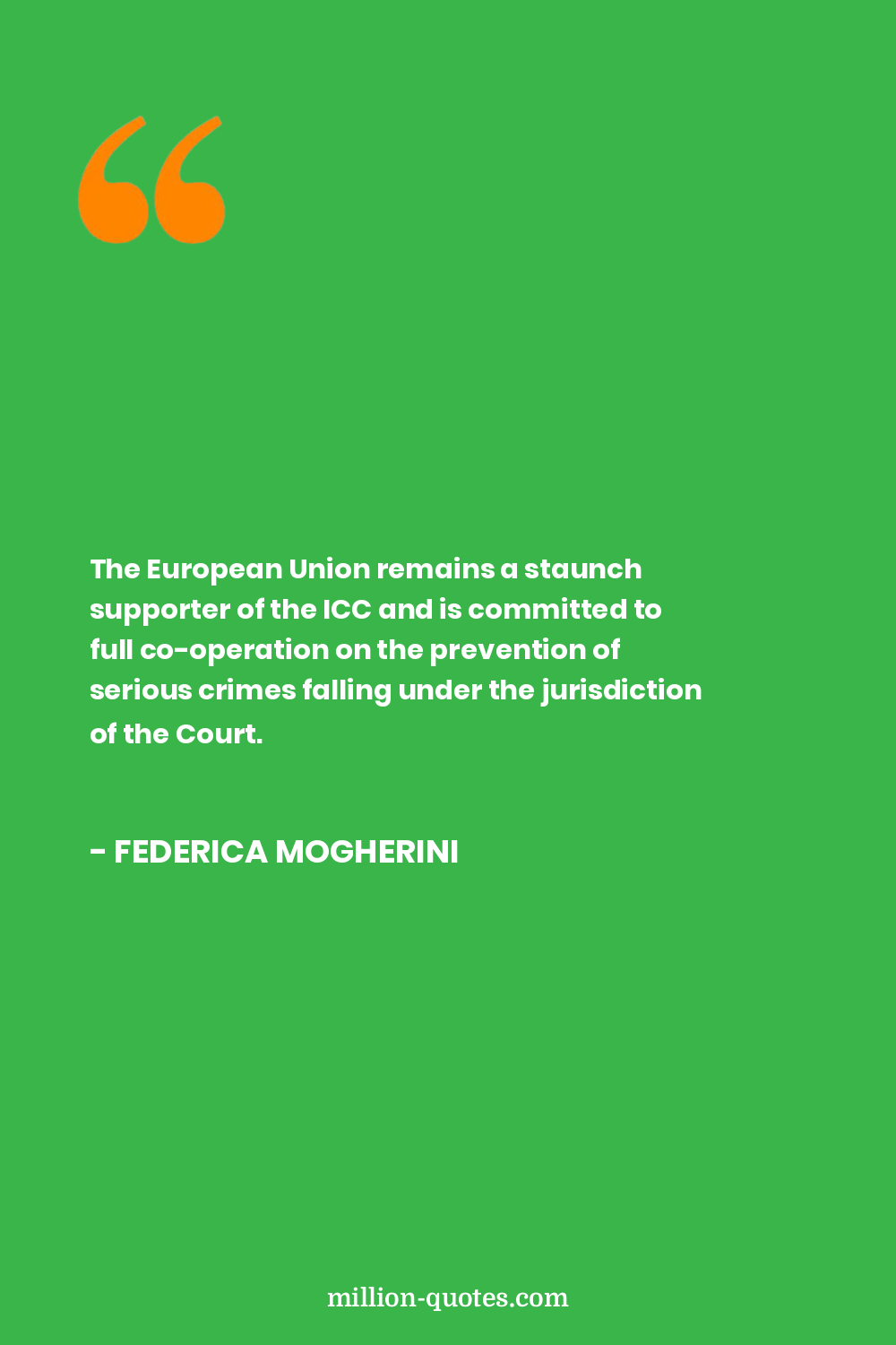 The European Union remains a staunch supporter of the ICC and is committed to full co-operation on the prevention of serious crimes falling under the jurisdiction of the Court.