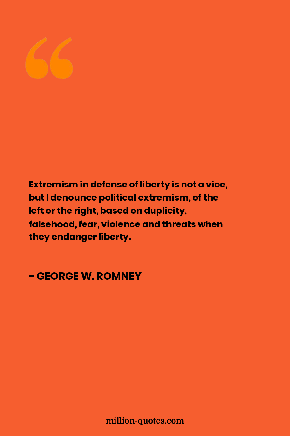Extremism in defense of liberty is not a vice, but I denounce political extremism, of the left or the right, based on duplicity, falsehood, fear, violence and threats when they endanger liberty.