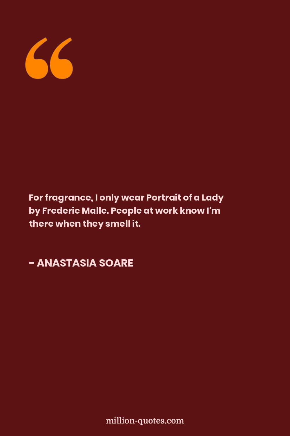 For fragrance, I only wear Portrait of a Lady by Frederic Malle. People at work know I'm there when they smell it.