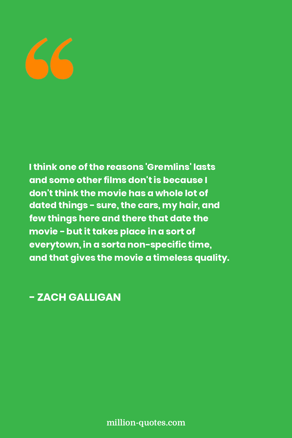 I think one of the reasons 'Gremlins' lasts and some other films don't is because I don't think the movie has a whole lot of dated things - sure, the cars, my hair, and few things here and there that date the movie - but it takes place in a sort of everytown, in a sorta non-specific time, and that gives the movie a timeless quality.