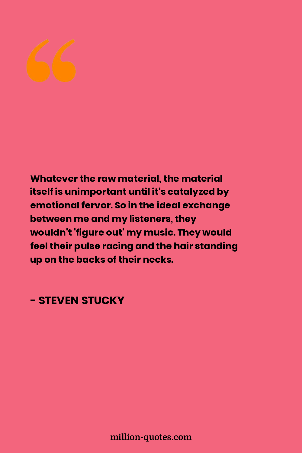 Whatever the raw material, the material itself is unimportant until it's catalyzed by emotional fervor. So in the ideal exchange between me and my listeners, they wouldn't 'figure out' my music. They would feel their pulse racing and the hair standing up on the backs of their necks.