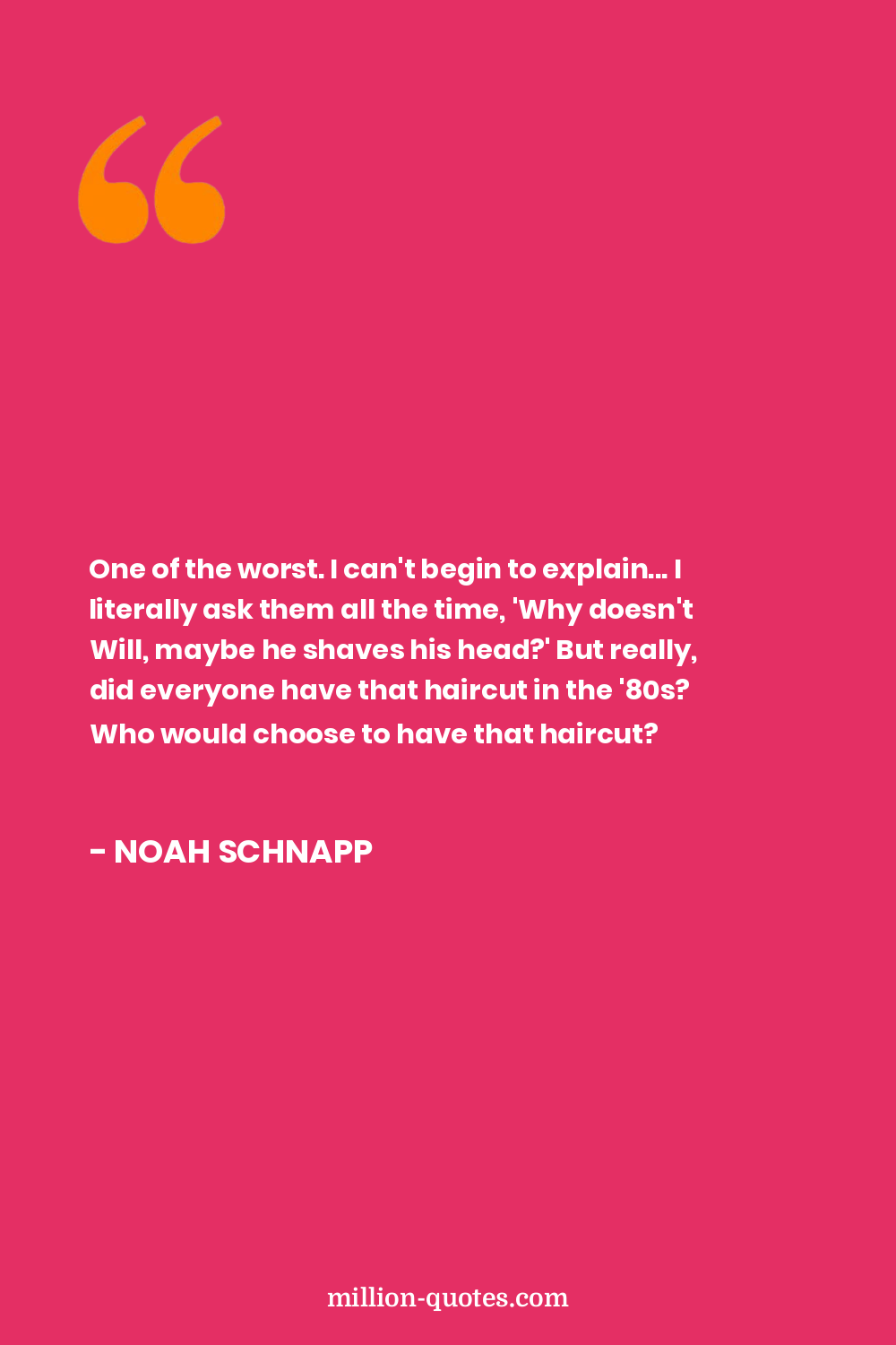 One of the worst. I can't begin to explain... I literally ask them all the time, 'Why doesn't Will, maybe he shaves his head?' But really, did everyone have that haircut in the '80s? Who would choose to have that haircut?