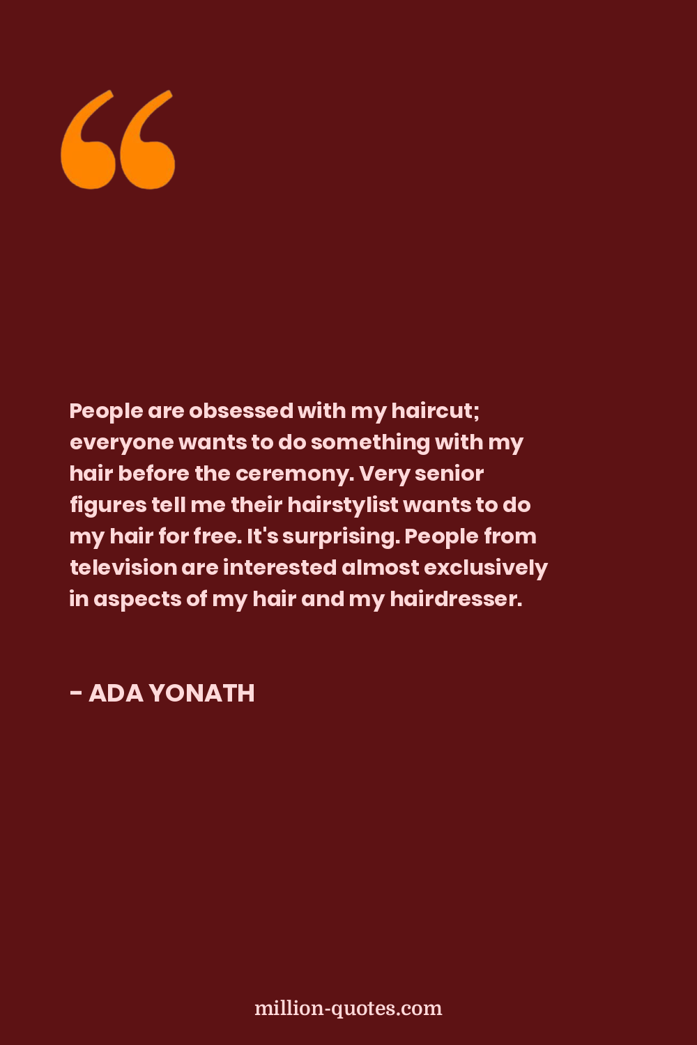 People are obsessed with my haircut; everyone wants to do something with my hair before the ceremony. Very senior figures tell me their hairstylist wants to do my hair for free. It's surprising. People from television are interested almost exclusively in aspects of my hair and my hairdresser.
