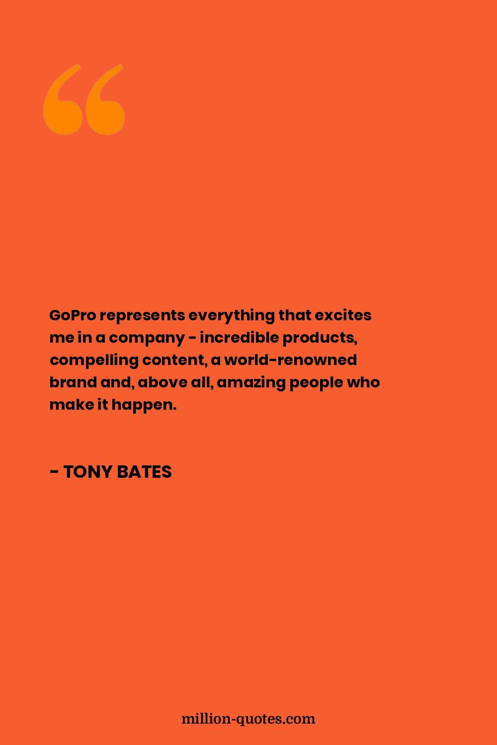 GoPro represents everything that excites me in a company - incredible products, compelling content, a world-renowned brand and, above all, amazing people who make it happen.