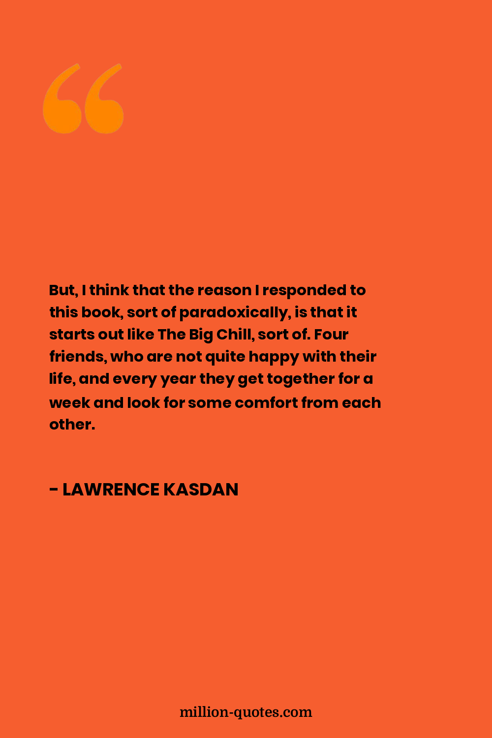 But, I think that the reason I responded to this book, sort of paradoxically, is that it starts out like The Big Chill, sort of. Four friends, who are not quite happy with their life, and every year they get together for a week and look for some comfort from each other.