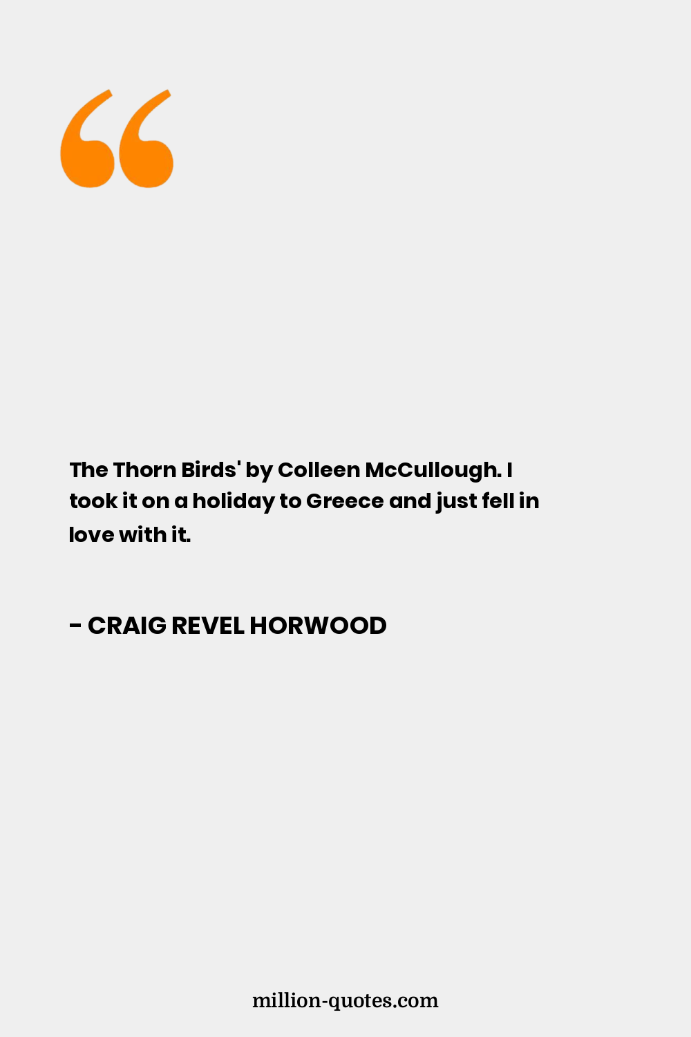 The Thorn Birds' by Colleen McCullough. I took it on a holiday to Greece and just fell in love with it.