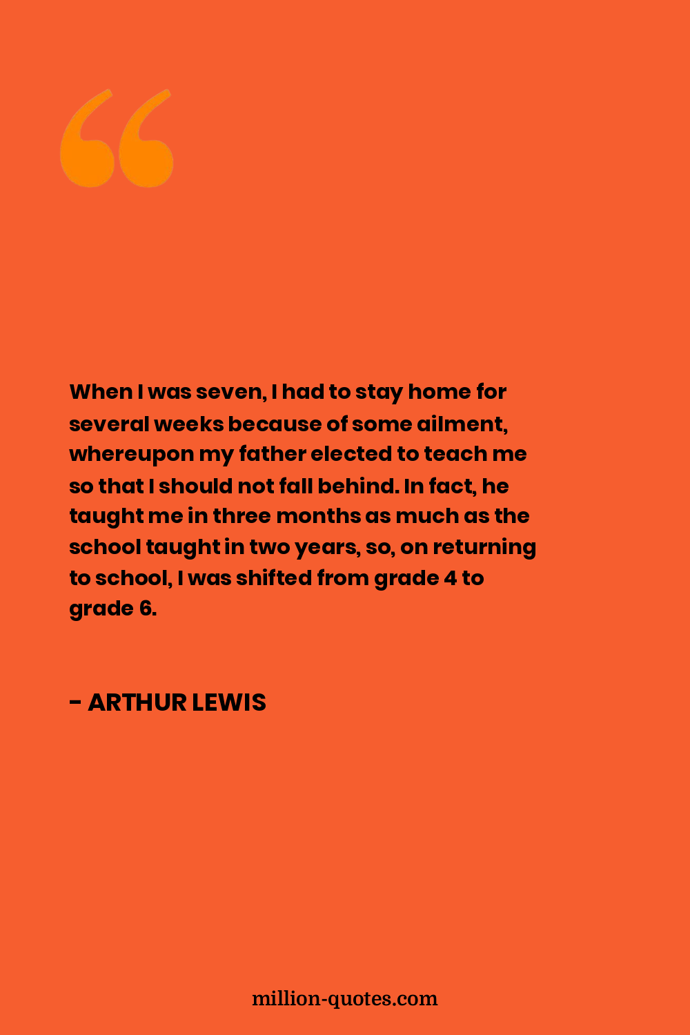 When I was seven, I had to stay home for several weeks because of some ailment, whereupon my father elected to teach me so that I should not fall behind. In fact, he taught me in three months as much as the school taught in two years, so, on returning to school, I was shifted from grade 4 to grade 6.