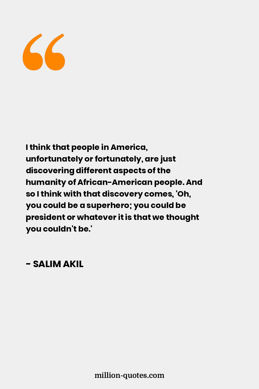I think that people in America, unfortunately or fortunately, are just discovering different aspects of the humanity of African-American people. And so I think with that discovery comes, 'Oh, you could be a superhero; you could be president or whatever it is that we thought you couldn't be.'