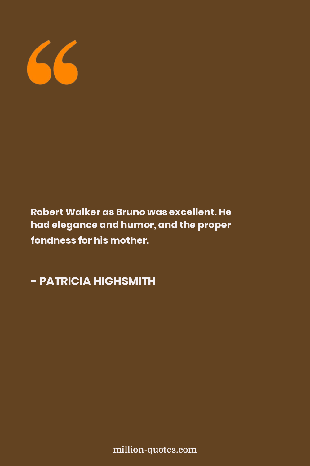 Robert Walker as Bruno was excellent. He had elegance and humor, and the proper fondness for his mother.