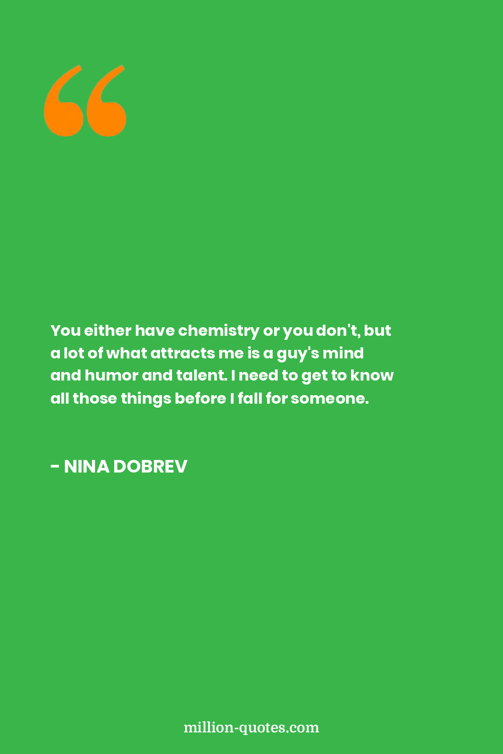 You either have chemistry or you don't, but a lot of what attracts me is a guy's mind and humor and talent. I need to get to know all those things before I fall for someone.