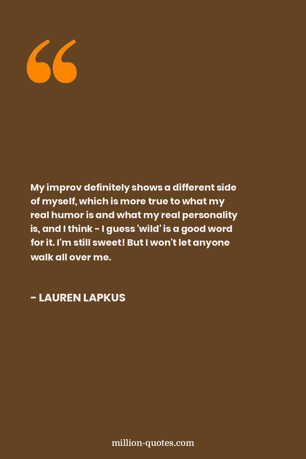 My improv definitely shows a different side of myself, which is more true to what my real humor is and what my real personality is, and I think - I guess 'wild' is a good word for it. I'm still sweet! But I won't let anyone walk all over me.