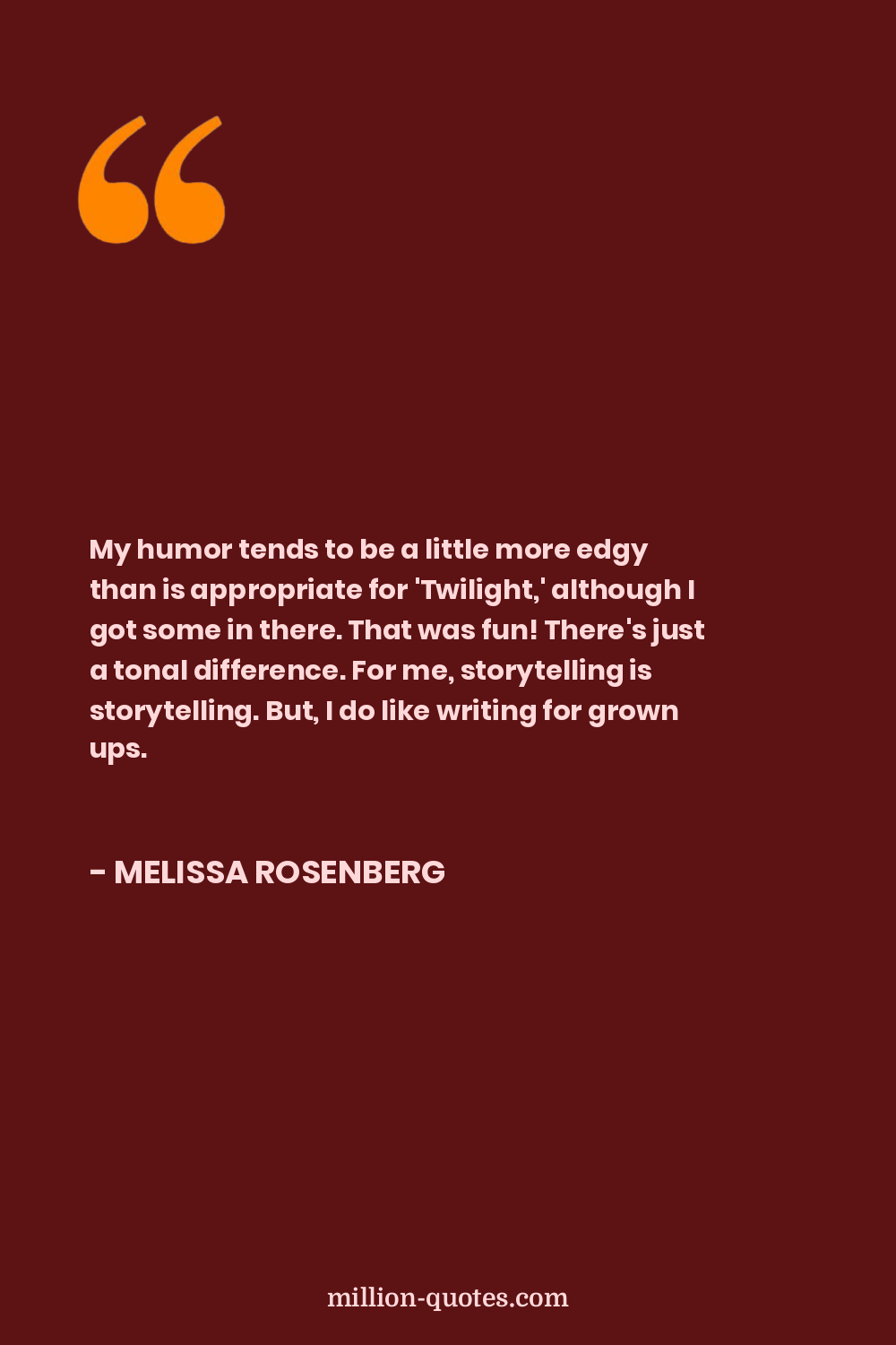 My humor tends to be a little more edgy than is appropriate for 'Twilight,' although I got some in there. That was fun! There's just a tonal difference. For me, storytelling is storytelling. But, I do like writing for grown ups.