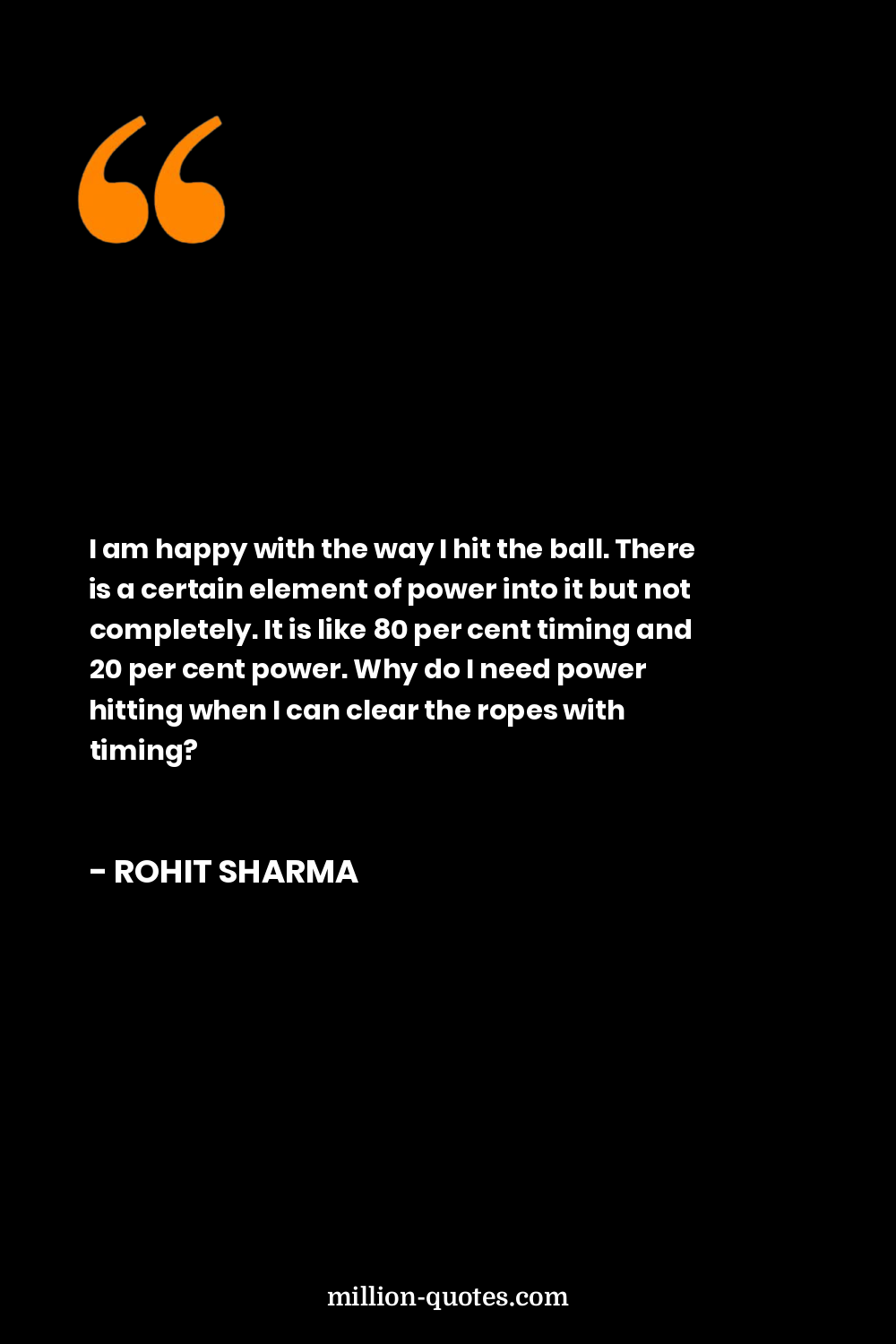 I am happy with the way I hit the ball. There is a certain element of power into it but not completely. It is like 80 per cent timing and 20 per cent power. Why do I need power hitting when I can clear the ropes with timing?