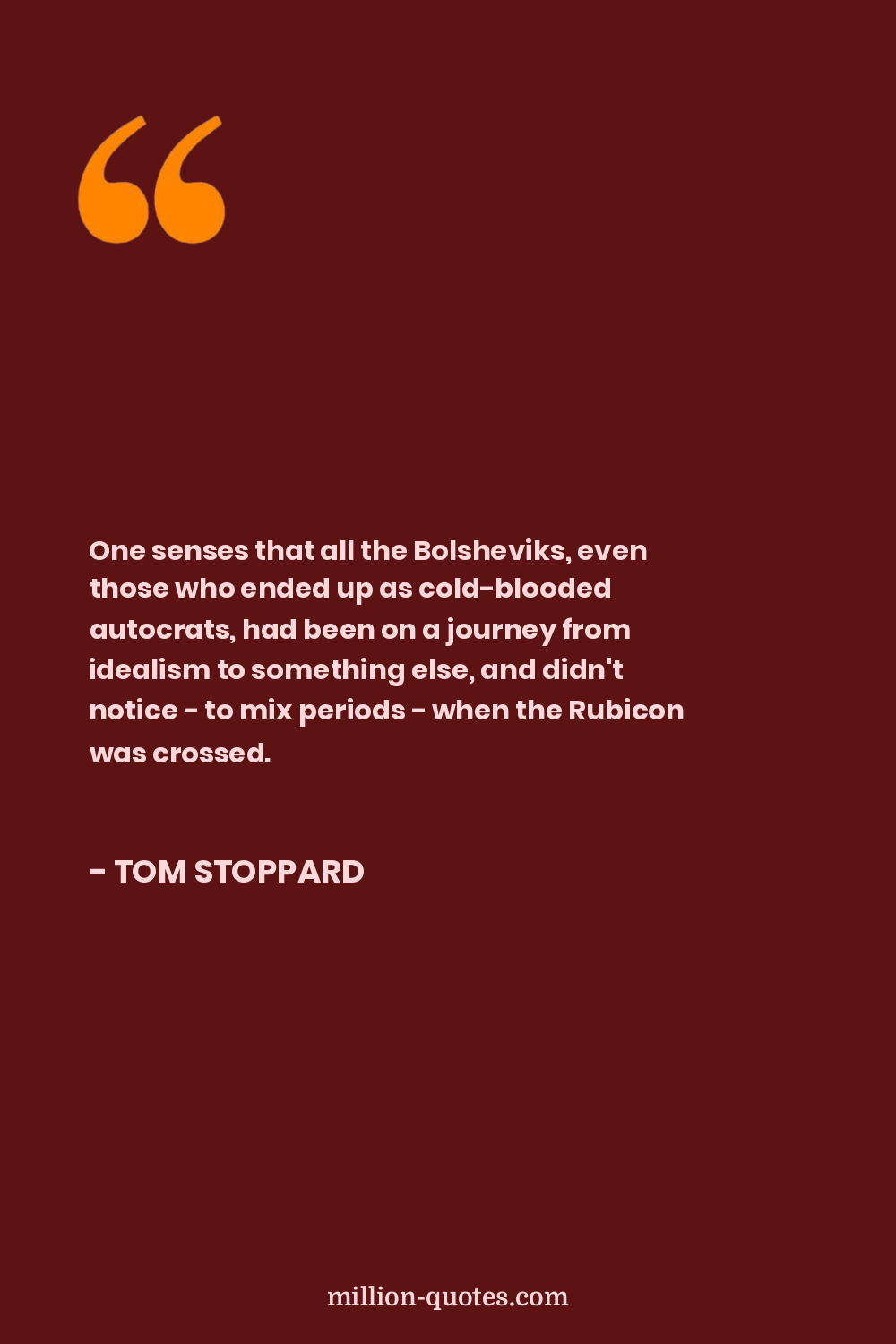 One senses that all the Bolsheviks, even those who ended up as cold-blooded autocrats, had been on a journey from idealism to something else, and didn't notice - to mix periods - when the Rubicon was crossed.
