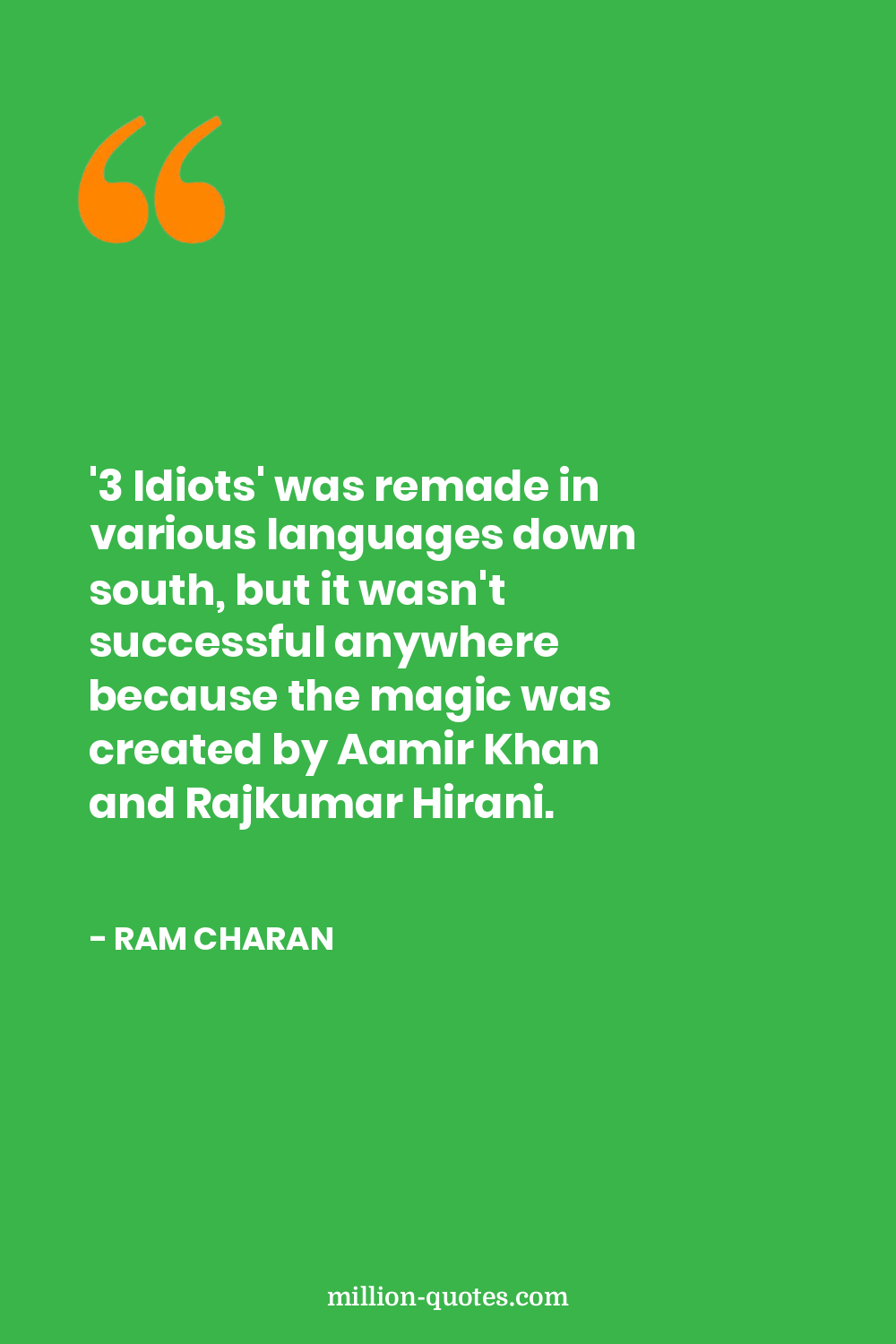 '3 Idiots' was remade in various languages down south, but it wasn't successful anywhere because the magic was created by Aamir Khan and Rajkumar Hirani.