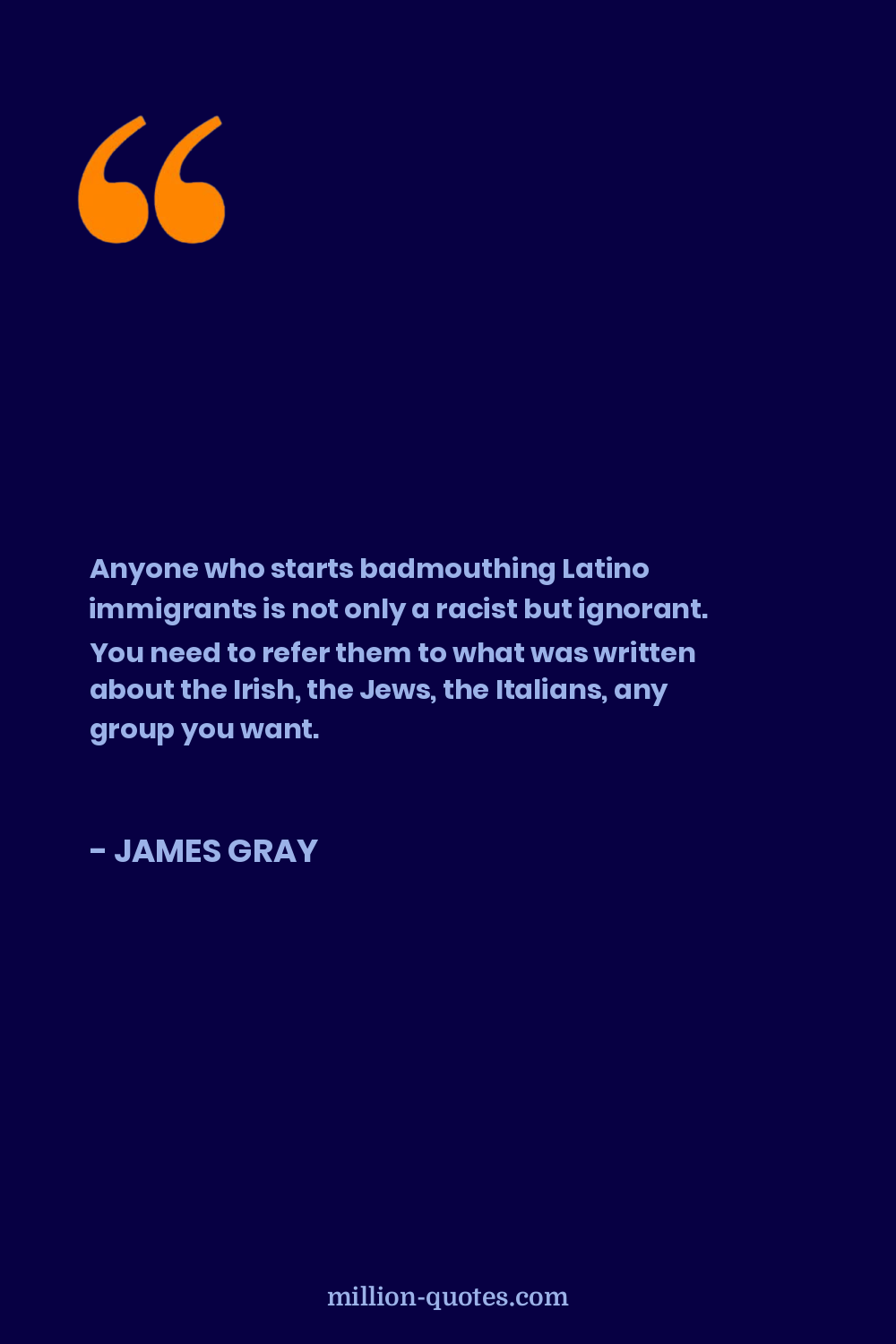Anyone who starts badmouthing Latino immigrants is not only a racist but ignorant. You need to refer them to what was written about the Irish, the Jews, the Italians, any group you want.