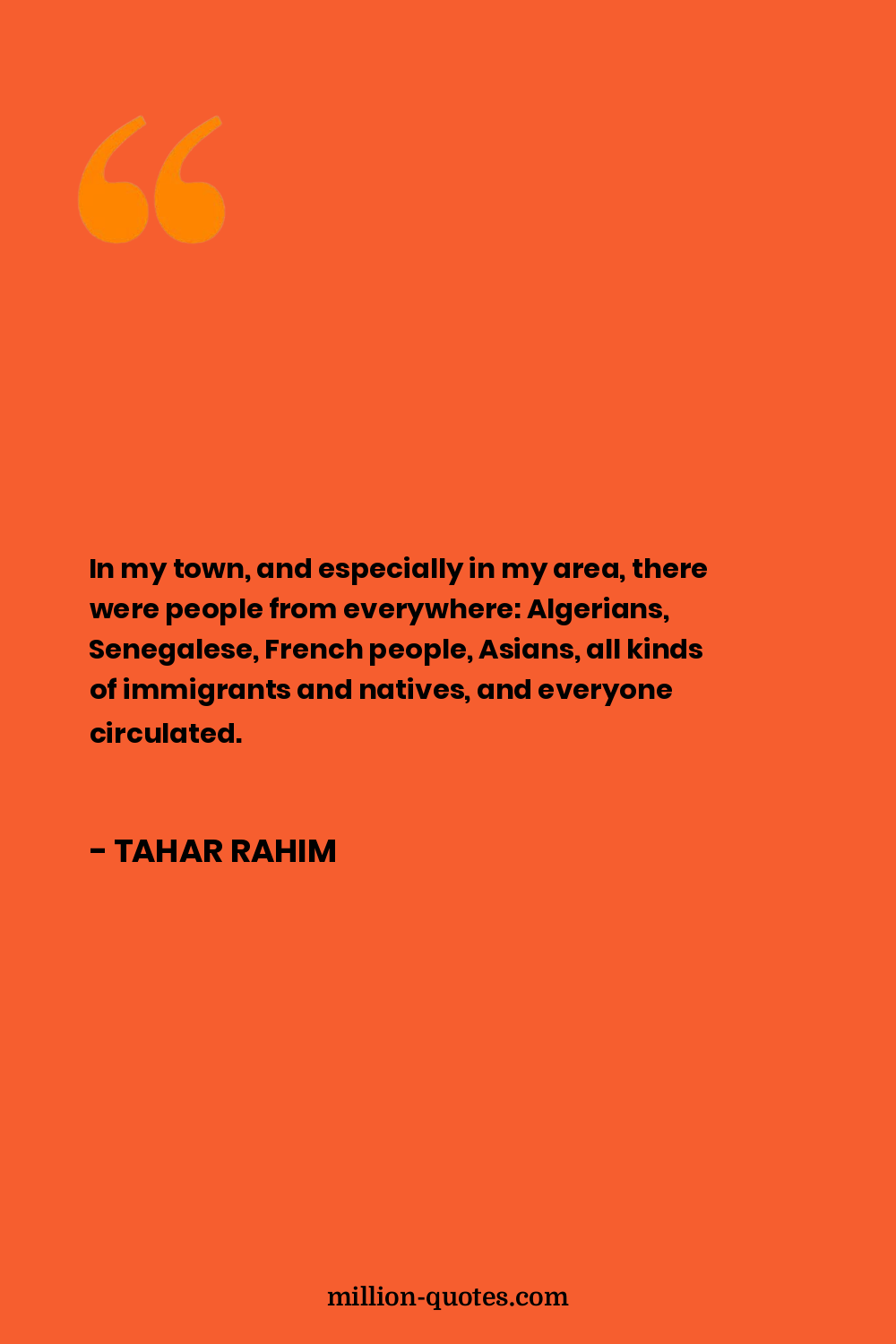 In my town, and especially in my area, there were people from everywhere: Algerians, Senegalese, French people, Asians, all kinds of immigrants and natives, and everyone circulated.