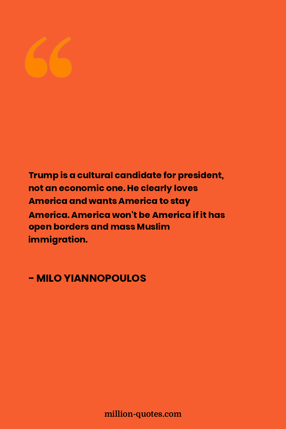 Trump is a cultural candidate for president, not an economic one. He clearly loves America and wants America to stay America. America won't be America if it has open borders and mass Muslim immigration.