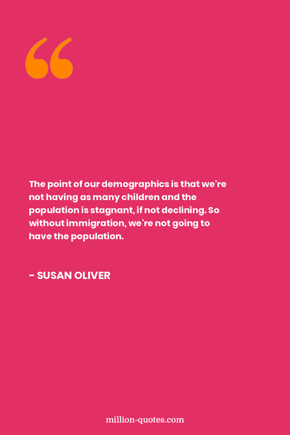 The point of our demographics is that we're not having as many children and the population is stagnant, if not declining. So without immigration, we're not going to have the population.
