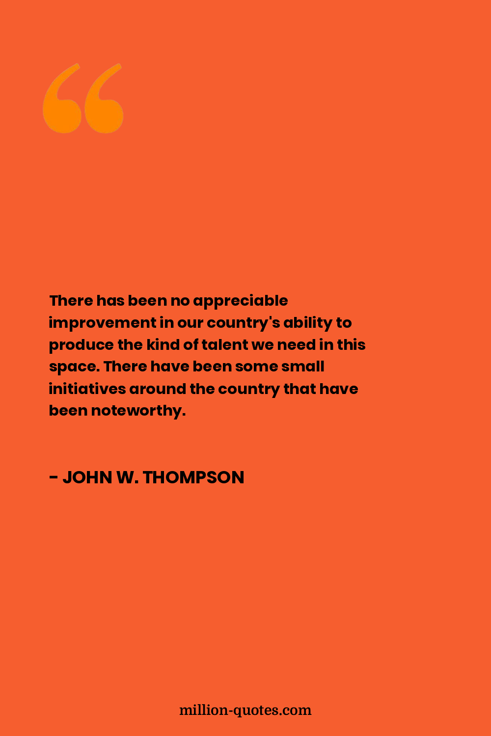 There has been no appreciable improvement in our country's ability to produce the kind of talent we need in this space. There have been some small initiatives around the country that have been noteworthy.