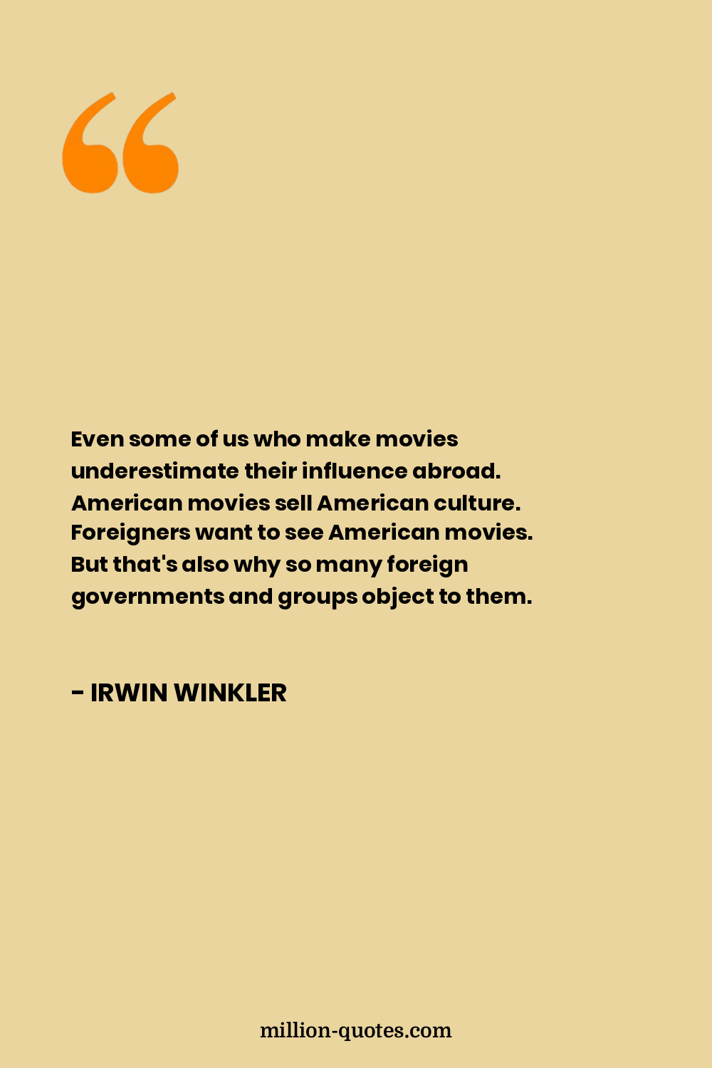 Even some of us who make movies underestimate their influence abroad. American movies sell American culture. Foreigners want to see American movies. But that's also why so many foreign governments and groups object to them.