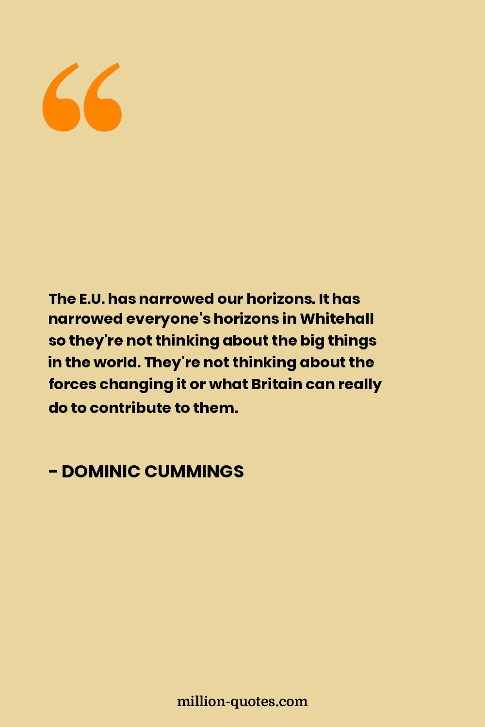 The E.U. has narrowed our horizons. It has narrowed everyone's horizons in Whitehall so they're not thinking about the big things in the world. They're not thinking about the forces changing it or what Britain can really do to contribute to them.