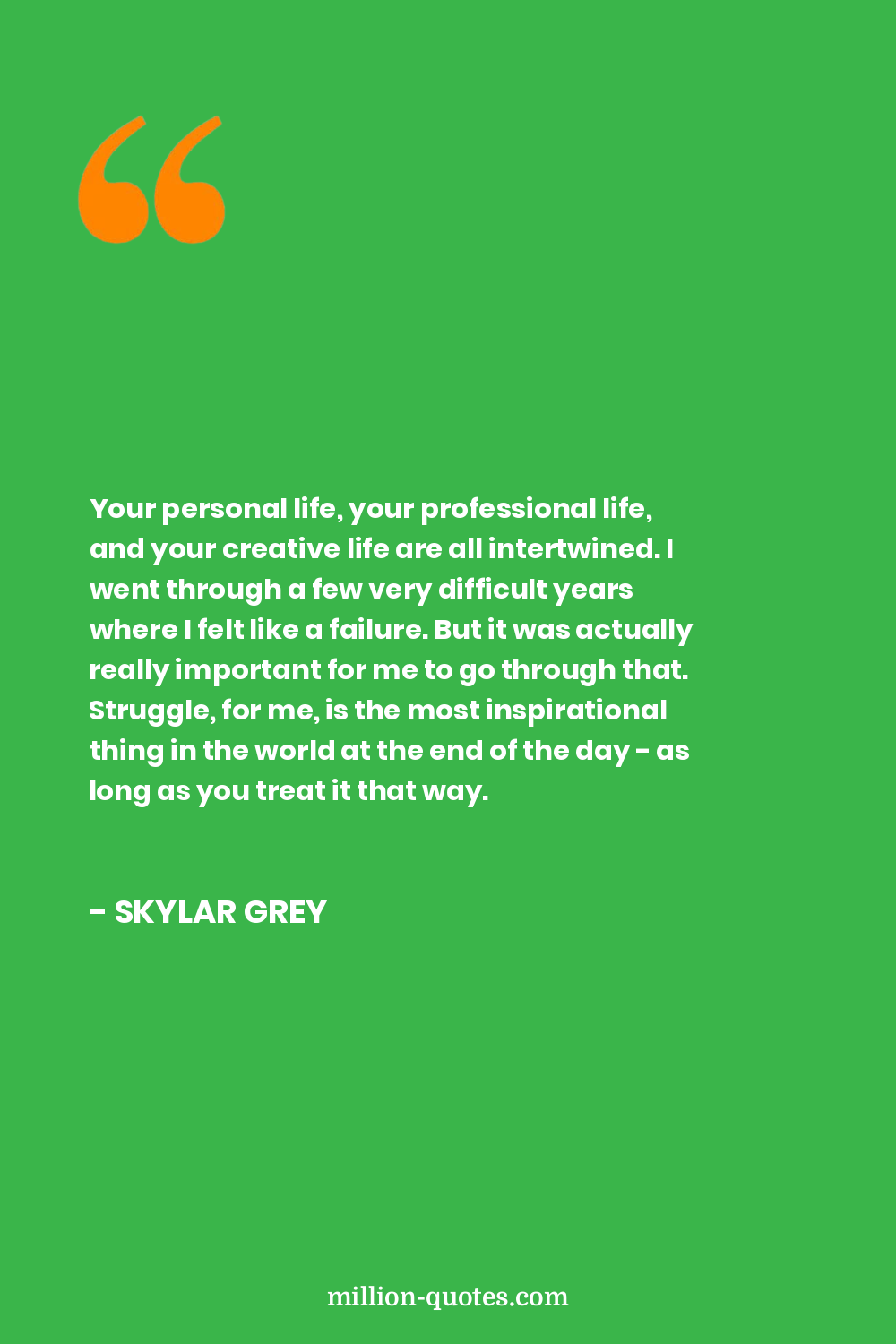 Your personal life, your professional life, and your creative life are all intertwined. I went through a few very difficult years where I felt like a failure. But it was actually really important for me to go through that. Struggle, for me, is the most inspirational thing in the world at the end of the day - as long as you treat it that way.