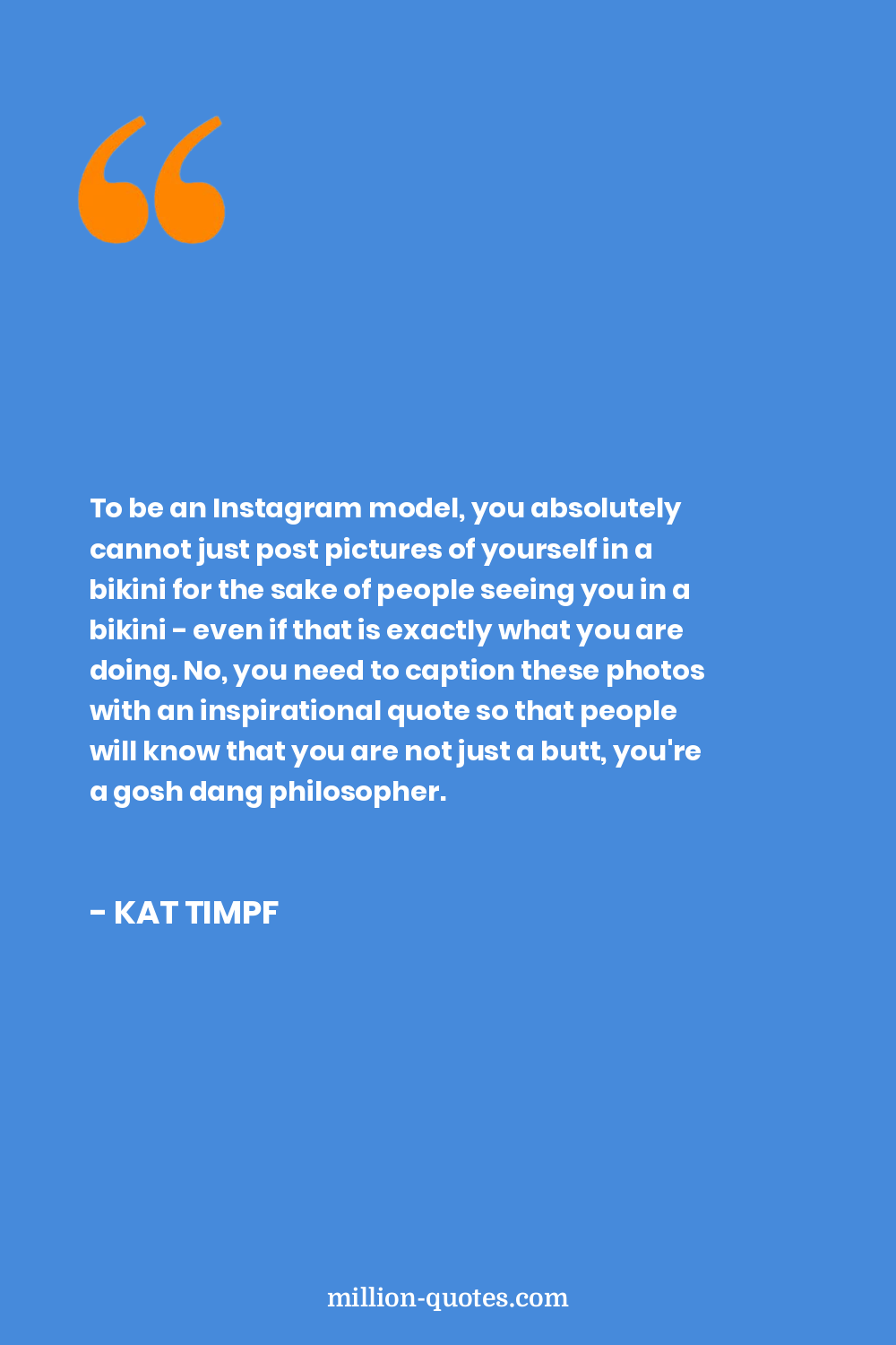 To be an Instagram model, you absolutely cannot just post pictures of yourself in a bikini for the sake of people seeing you in a bikini - even if that is exactly what you are doing. No, you need to caption these photos with an inspirational quote so that people will know that you are not just a butt, you're a gosh dang philosopher.