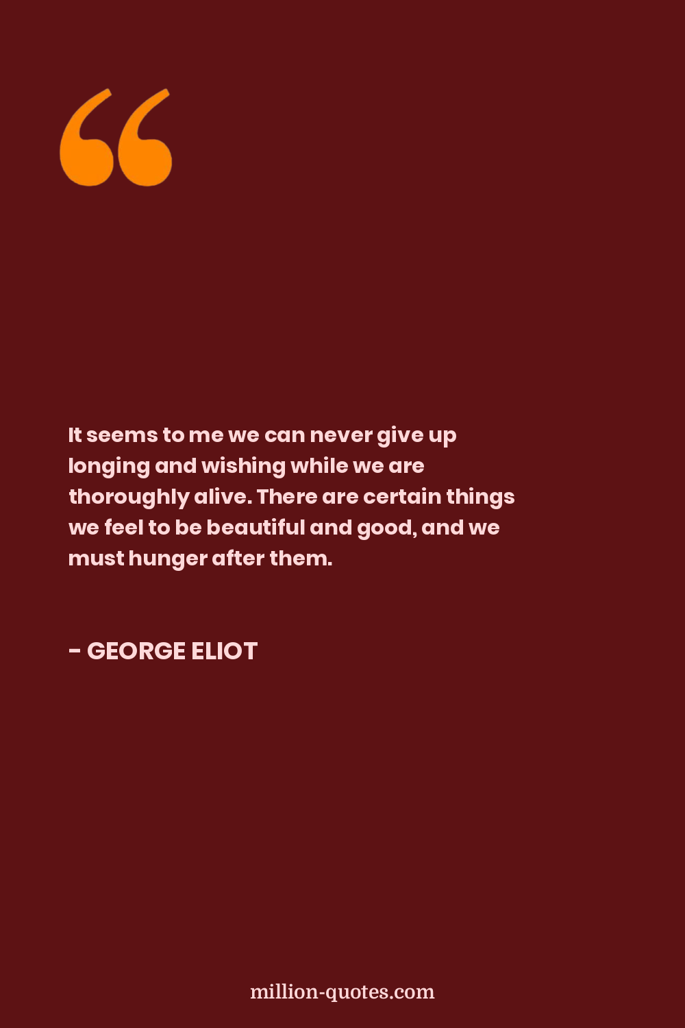 It seems to me we can never give up longing and wishing while we are thoroughly alive. There are certain things we feel to be beautiful and good, and we must hunger after them.