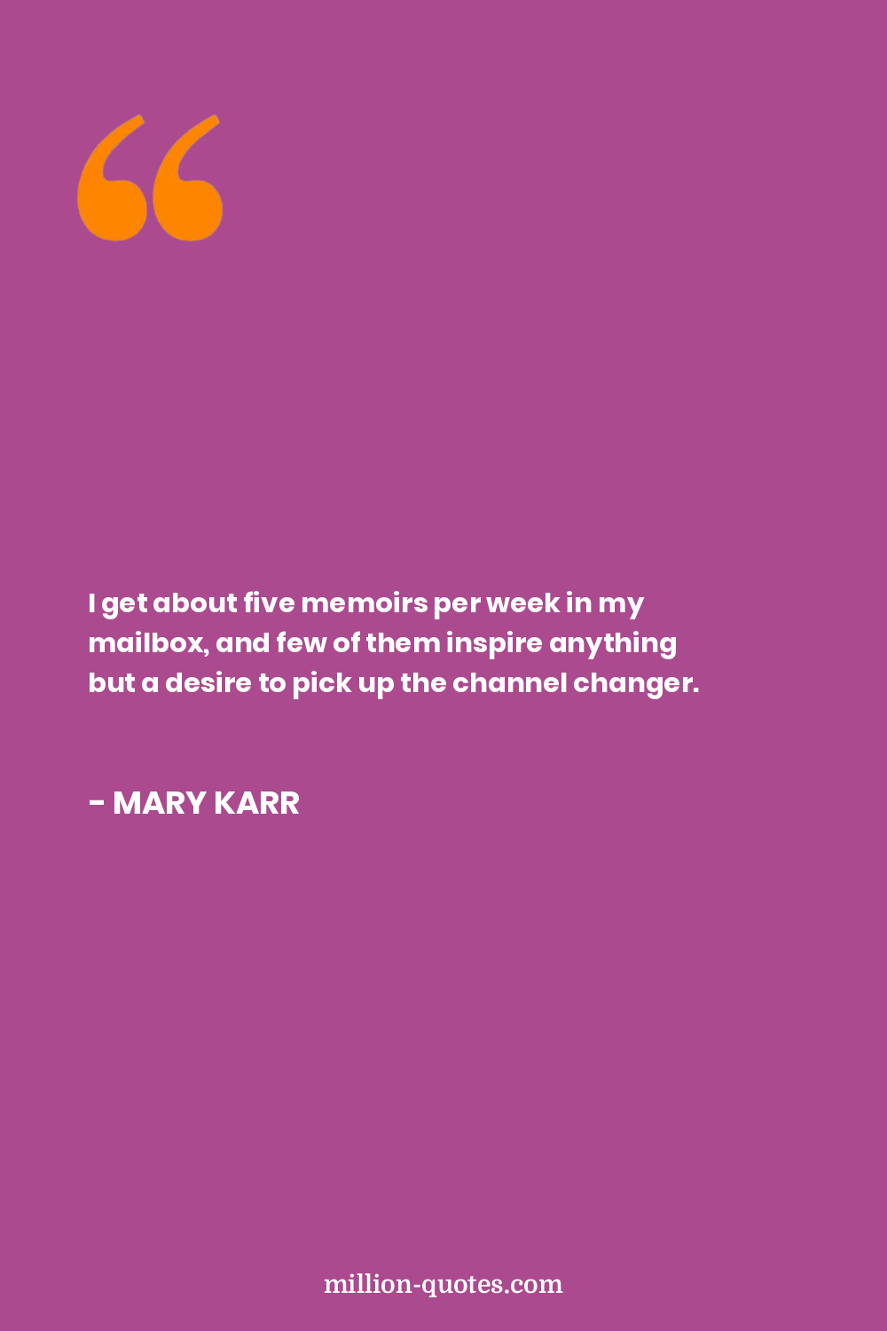 I get about five memoirs per week in my mailbox, and few of them inspire anything but a desire to pick up the channel changer.