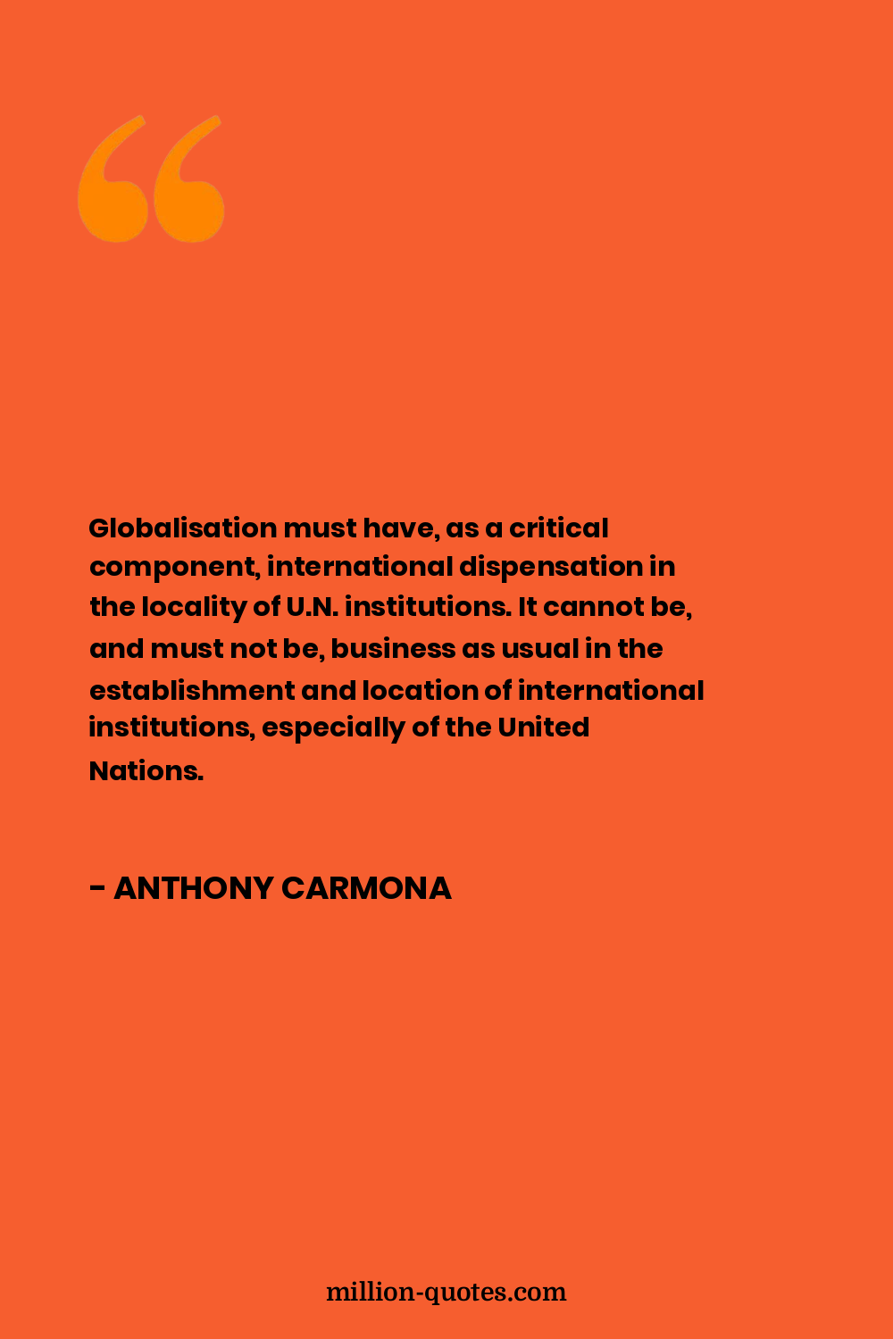Globalisation must have, as a critical component, international dispensation in the locality of U.N. institutions. It cannot be, and must not be, business as usual in the establishment and location of international institutions, especially of the United Nations.
