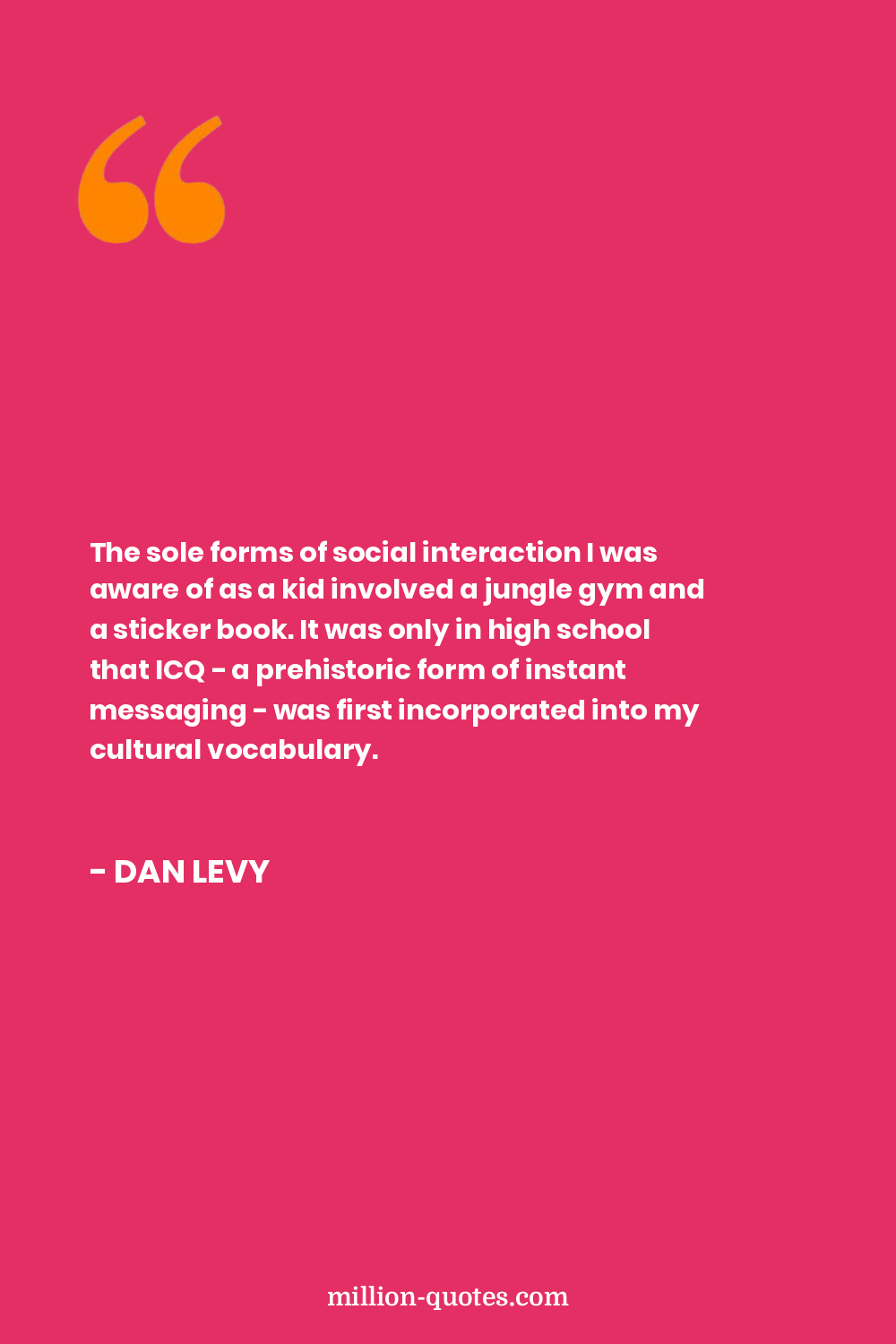 The sole forms of social interaction I was aware of as a kid involved a jungle gym and a sticker book. It was only in high school that ICQ - a prehistoric form of instant messaging - was first incorporated into my cultural vocabulary.