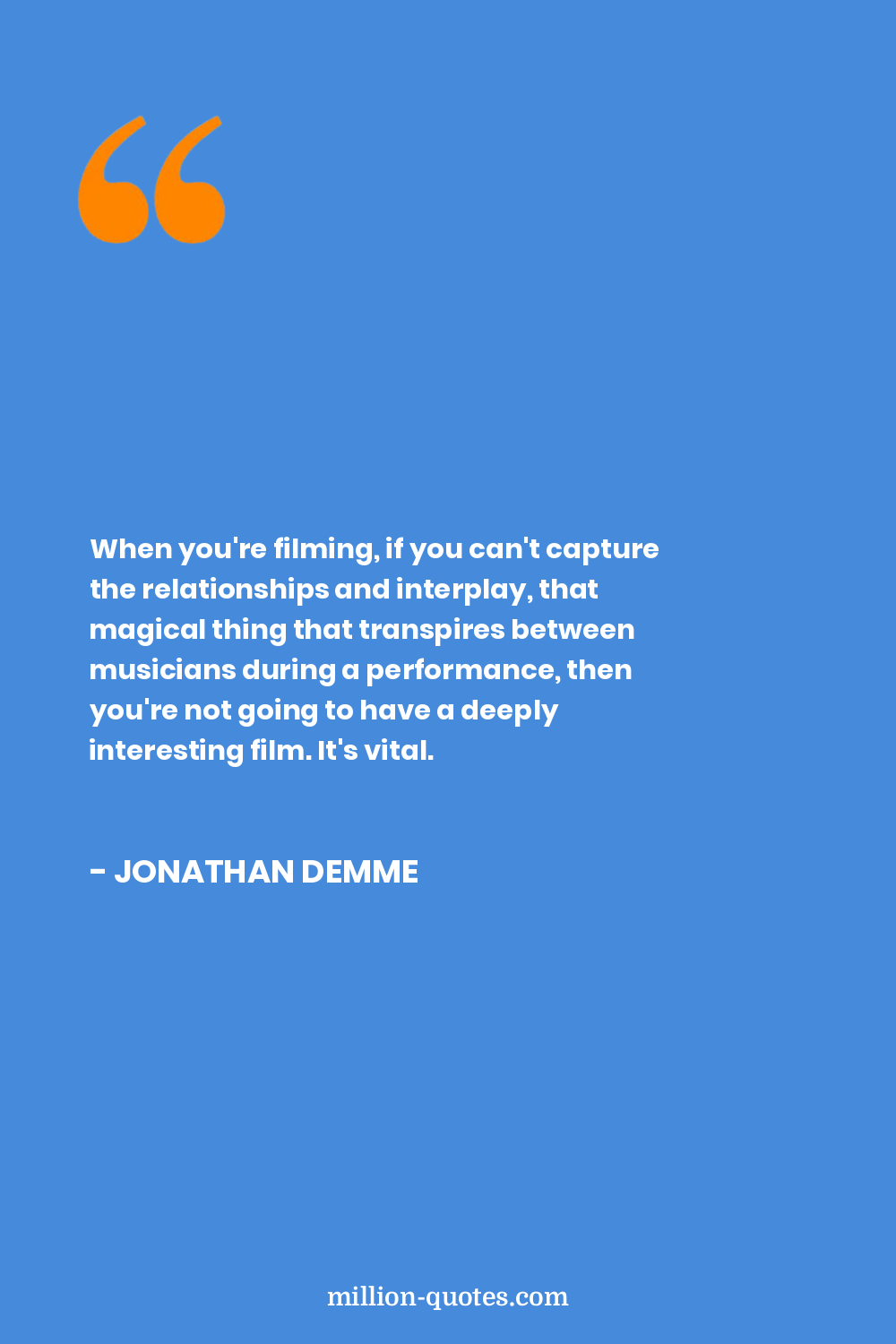 When you're filming, if you can't capture the relationships and interplay, that magical thing that transpires between musicians during a performance, then you're not going to have a deeply interesting film. It's vital.