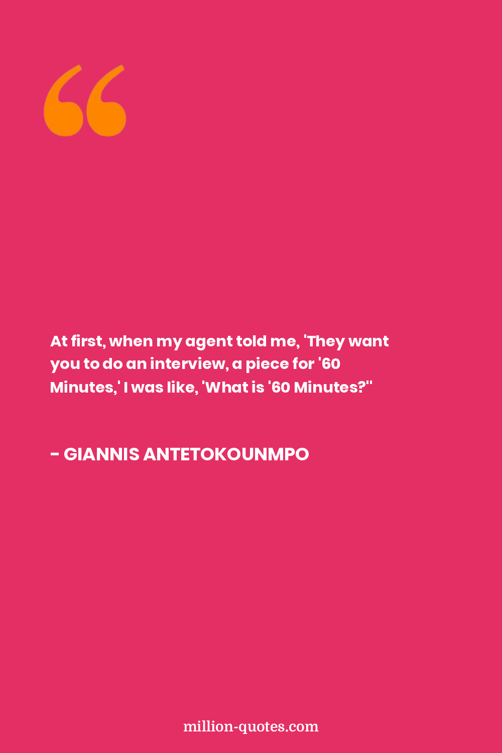 At first, when my agent told me, 'They want you to do an interview, a piece for '60 Minutes,' I was like, 'What is '60 Minutes?''
